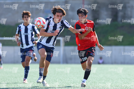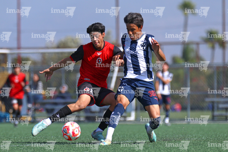 Tijuana, Baja California, 14 de febrero de 2026. Enrique Domínguez (D), durante el partido correspondiente a la jornada 6 del torneo Clausura 2026 de la Liga BBVA MX categoría Sub17, entre los Xolos de Tijuana y los Rayados del Monterrey, realizado en el Centro de Iniciación Xoloitzcuintle. Foto: Imago7/ David Vega