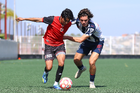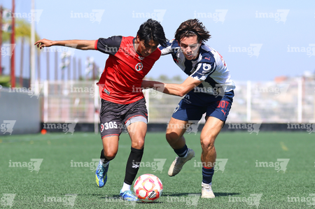 Tijuana, Baja California, 14 de febrero de 2026. Josué Aguilar y Santiago Aguirre, durante el partido correspondiente a la jornada 6 del torneo Clausura 2026 de la Liga BBVA MX categoría Sub17, entre los Xolos de Tijuana y los Rayados del Monterrey, realizado en el Centro de Iniciación Xoloitzcuintle. Foto: Imago7/ David Vega