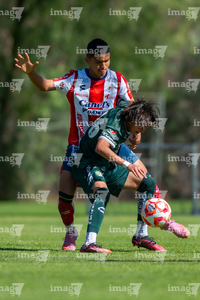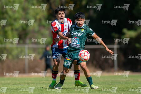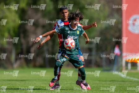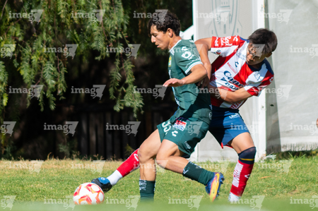 San Luis Potosí, San Luis Potosí, 21 de febrero de 2026. Juan Juárez (D), durante el partido correspondiente a la jornada 7 del torneo Clausura 2026 de la Liga BBVA MX categoría Sub17, entre el Atlético San Luis y los Esmeraldas de León, realizado en La Presa. Foto: Imago7/