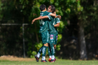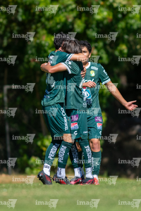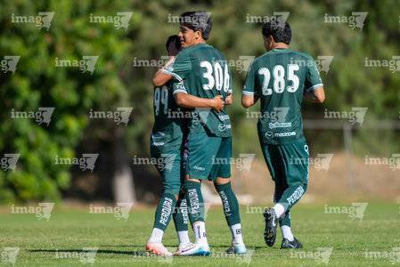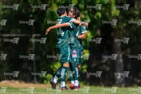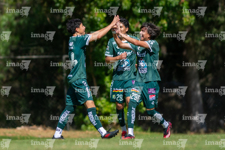 San Luis Potosí, San Luis Potosí, 21 de febrero de 2026. Jugadores de León en festejo de gol, durante el partido correspondiente a la jornada 7 del torneo Clausura 2026 de la Liga BBVA MX categoría Sub17, entre el Atlético San Luis y los Esmeraldas de León, realizado en La Presa. Foto: Imago7/
