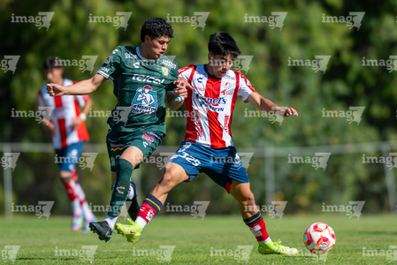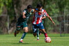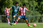 San Luis Potosí, San Luis Potosí, 21 de febrero de 2026. Juan Mata (I), durante el partido correspondiente a la jornada 7 del torneo Clausura 2026 de la Liga BBVA MX categoría Sub17, entre el Atlético San Luis y los Esmeraldas de León, realizado en La Presa. Foto: Imago7/
