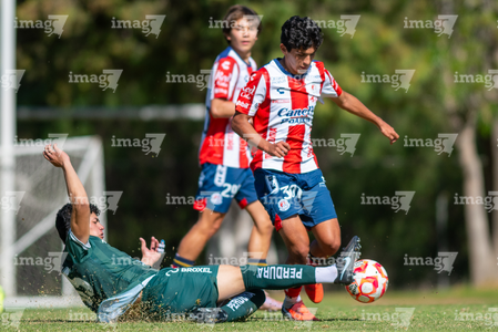 San Luis Potosí, San Luis Potosí, 21 de febrero de 2026. Cristóbal Escutia (I), durante el partido correspondiente a la jornada 7 del torneo Clausura 2026 de la Liga BBVA MX categoría Sub17, entre el Atlético San Luis y los Esmeraldas de León, realizado en La Presa. Foto: Imago7/