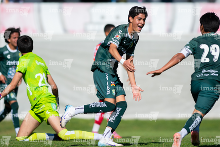 San Luis Potosí, San Luis Potosí, 21 de febrero de 2026. Omar Gutiérrez en festejo de gol, durante el partido correspondiente a la jornada 7 del torneo Clausura 2026 de la Liga BBVA MX categoría Sub17, entre el Atlético San Luis y los Esmeraldas de León, realizado en La Presa. Foto: Imago7/