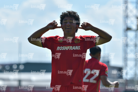 Metepec, Estado de México, 22 de marzo de 2026. Hector Martinez en festejo de gol, durante el partido correspondiente a la jornada 11 del torneo Clausura 2026 de la Liga BBVA MX categoría Sub17, entre los Diablos Rojos del Toluca y los Pumas de la UNAM, realizado en las instalaciones de Metepec. Foto: Imago7/ Arturo Hernández