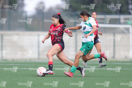 Guadalajara, Jalisco, 1 de febrero de 2026. , durante el partido correspondiente a la jornada 4 del torneo Clausura 2026 de la Liga BBVA MX Femenil categoría Sub19, entre las Rojinegras del Atlas y las Guerreras de Santos Laguna, realizado en la Academia AGA. Foto: Imago7/ Cristian Hernández