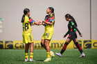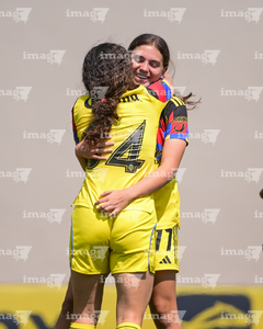 Ciudad de México, 14 de febrero de 2026. Alexa Gurrola recibe gol, durante el partido correspondiente a la jornada 6 del torneo Clausura 2026 de la Liga BBVA MX Femenil categoría Sub19, entre las Águilas del América y las Bravas de FC Juárez, realizado en Coapa. Foto: Imago7/ Alexis Chavez