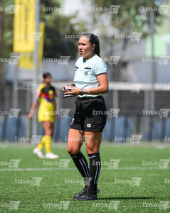 Ciudad de México, 14 de febrero de 2026. Mayra Isabel Martínez Javier, árbitra central, durante el partido correspondiente a la jornada 6 del torneo Clausura 2026 de la Liga BBVA MX Femenil categoría Sub19, entre las Águilas del América y las Bravas de FC Juárez, realizado en Coapa. Foto: Imago7/ Alexis Chavez