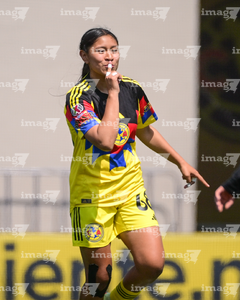Ciudad de México, 14 de febrero de 2026. Kemberly García en festejo de gol, durante el partido correspondiente a la jornada 6 del torneo Clausura 2026 de la Liga BBVA MX Femenil categoría Sub19, entre las Águilas del América y las Bravas de FC Juárez, realizado en Coapa. Foto: Imago7/ Alexis Chavez
