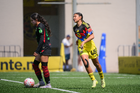 Ciudad de México, 14 de febrero de 2026. Karla Jiménez y Evelyn Chavez, durante el partido correspondiente a la jornada 6 del torneo Clausura 2026 de la Liga BBVA MX Femenil categoría Sub19, entre las Águilas del América y las Bravas de FC Juárez, realizado en Coapa. Foto: Imago7/ Alexis Chavez
