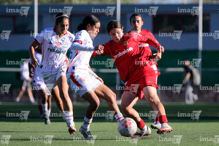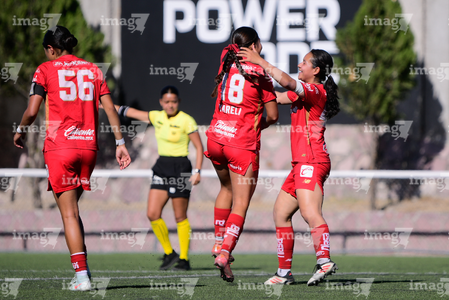 Aguascalientes, Aguascalientes, 14 de febrero de 2026. , durante el partido correspondiente a la jornada 6 del torneo Clausura 2026 de la Liga BBVA MX Femenil categoría Sub19, entre las Centellas del Necaxa y las Diablas Rojas del Toluca, realizado en la Casa Club del Necaxa. Foto: Imago7/ Pablo Ramírez