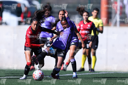 Guadalajara, Jalisco, 15 de febrero de 2026. , durante el partido correspondiente a la jornada 6 del torneo Clausura 2026 de la Liga BBVA MX Femenil categoría Sub19, entre las Rojinegras del Atlas y las Cañoneras del Mazatlán FC, realizado en la Academia AGA. Foto: Imago7/ Cristian Hernández