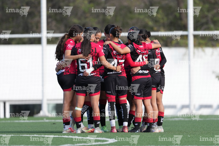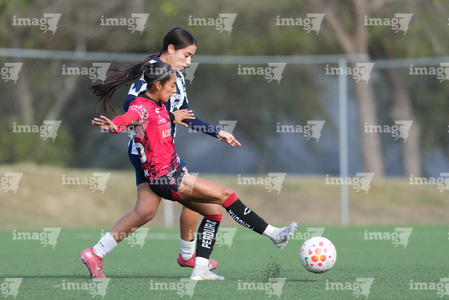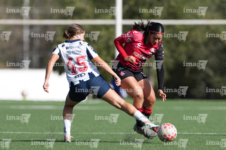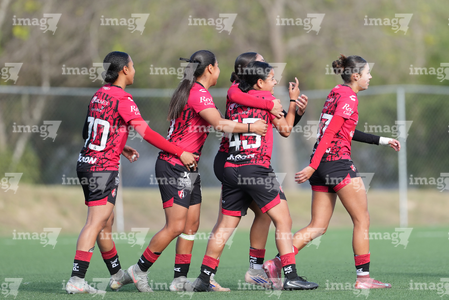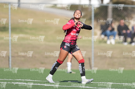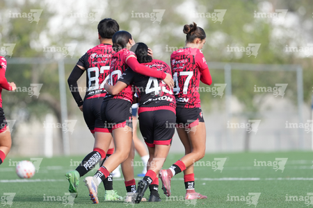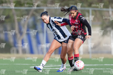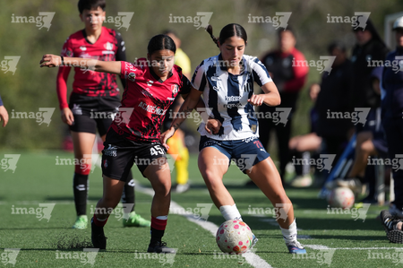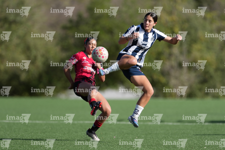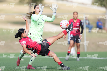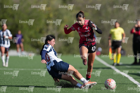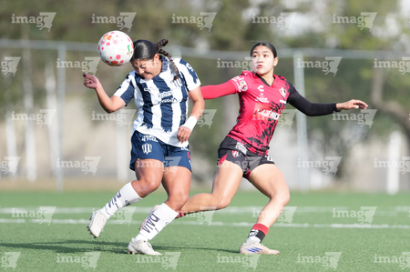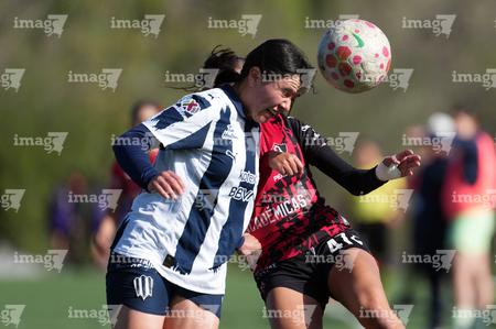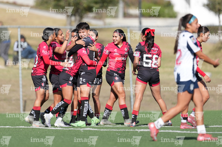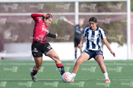 Guadalupe, Nuevo León, 22 de febrero de 2025. , durante el partido correspondiente a la jornada 7 del torneo Clausura 2025 de la Liga BBVA MX Femenil categoría Sub19, entre las Rayadas del Monterrey y las Rojinegras del Atlas, realizado en El Barrial. Foto: Imago7/
