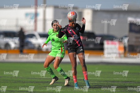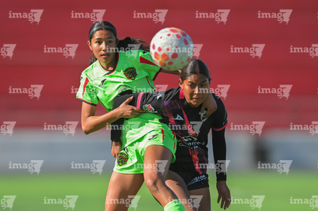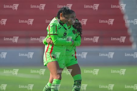 Ciudad Juárez, Chihuahua, 22 de febrero de 2026. Valeria Sanchez y Hanny Herrera, durante el partido correspondiente a la jornada 7 del torneo Clausura 2026 de la Liga BBVA MX Femenil categoría Sub19, entre las Bravas de FC Juárez y el Club Puebla, realizado en realizado en el Estadio 8 de Diciembre. Foto: Imago7/ José Zamora