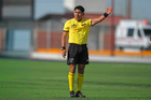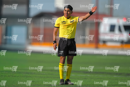 Ciudad Juárez, Chihuahua, 22 de febrero de 2026. Abraham Michael Velasco, árbitro central, durante el partido correspondiente a la jornada 7 del torneo Clausura 2026 de la Liga BBVA MX Femenil categoría Sub19, entre las Bravas de FC Juárez y el Club Puebla, realizado en realizado en el Estadio 8 de Diciembre. Foto: Imago7/ José Zamora