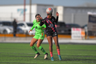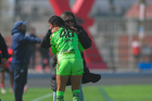 Ciudad Juárez, Chihuahua, 22 de febrero de 2026. Nahomi Soto y Karla González, durante el partido correspondiente a la jornada 7 del torneo Clausura 2026 de la Liga BBVA MX Femenil categoría Sub19, entre las Bravas de FC Juárez y el Club Puebla, realizado en realizado en el Estadio 8 de Diciembre. Foto: Imago7/ José Zamora