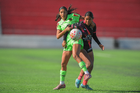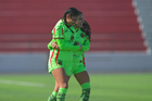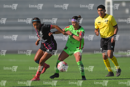 Ciudad Juárez, Chihuahua, 22 de febrero de 2026. América Mares y Celina Uranga, durante el partido correspondiente a la jornada 7 del torneo Clausura 2026 de la Liga BBVA MX Femenil categoría Sub19, entre las Bravas de FC Juárez y el Club Puebla, realizado en realizado en el Estadio 8 de Diciembre. Foto: Imago7/ José Zamora
