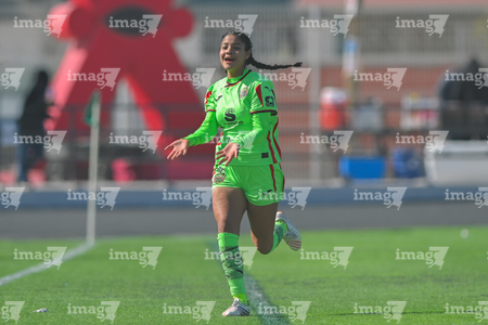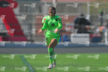 Ciudad Juárez, Chihuahua, 22 de febrero de 2026. Aileen López en festejo de gol, durante el partido correspondiente a la jornada 7 del torneo Clausura 2026 de la Liga BBVA MX Femenil categoría Sub19, entre las Bravas de FC Juárez y el Club Puebla, realizado en realizado en el Estadio 8 de Diciembre. Foto: Imago7/ José Zamora