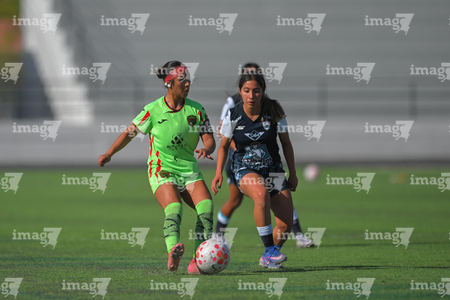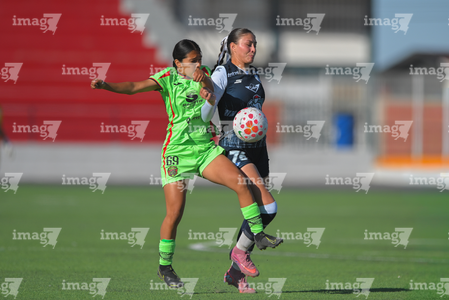 Ciudad Juárez, Chihuahua, 22 de Marzo de 2026. Xiomara Lujan y Katia Delgado, durante el partido correspondiente a la jornada 11 del torneo Clausura 2026 de la Liga BBVA MX Femenil categoría Sub19, entre las Bravas de FC Juárez y las Tuzas del Pachuca, realizado en realizado en el Estadio 8 de Diciembre. Foto: Imago7/ José Zamora