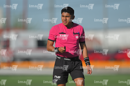 Ciudad Juárez, Chihuahua, 22 de Marzo de 2026. Abraham Michael Velasco, árbitro central, durante el partido correspondiente a la jornada 11 del torneo Clausura 2026 de la Liga BBVA MX Femenil categoría Sub19, entre las Bravas de FC Juárez y las Tuzas del Pachuca, realizado en realizado en el Estadio 8 de Diciembre. Foto: Imago7/ José Zamora