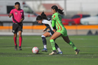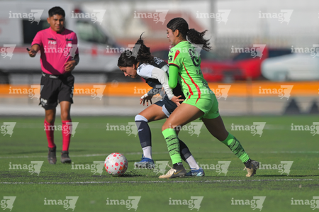 Ciudad Juárez, Chihuahua, 22 de Marzo de 2026. Valeria Sanchez y Ami Chavira, durante el partido correspondiente a la jornada 11 del torneo Clausura 2026 de la Liga BBVA MX Femenil categoría Sub19, entre las Bravas de FC Juárez y las Tuzas del Pachuca, realizado en realizado en el Estadio 8 de Diciembre. Foto: Imago7/ José Zamora