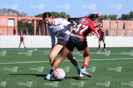 Guadalajara, Jalisco, 5 de abril de 2026. , durante el partido correspondiente a la jornada 13 del torneo Clausura 2026 de la Liga BBVA MX Femenil categoría Sub19, entre las Rojinegras del Atlas y las Esmeraldas del León, realizado en la Academia AGA. Foto: Imago7/ Cristian Hernández