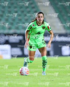 Ciudad Juárez, Chihuahua, 05 de febrero de 2025. Aurelie Kaci, durante el partido correspondiente a la jornada 7 del torneo Clausura 2026 de la Liga BBVA MX Femenil, entre las Bravas de FC Juárez y las Águilas del América, realizado en realizado en el estadio Olímpico Benito Juárez. Foto: Imago7/ Alejandro Rodríguez