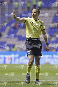 Puebla, Puebla, 04 de marzo de 2026. Joaquín Alberto Vizcarra, árbitro central, durante el partido correspondiente a la jornada 9 del torneo Clausura 2026 de la Liga BBVA MX, entre el Club Puebla y los Tigres de la UANL, realizado en el estadio Cuauhtémoc. Foto: Imago7/Mireya Novo