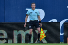 Tijuana, Baja California, 20 de enero de 2026. Eduardo Aldahir Barriga Castro, árbitro asistente, durante el partido correspondiente a la jornada 4 del torneo Clausura 2026 de la Liga BBVA MX Femenil, entre las Xolas de Tijuana y las Bravas de FC Juárez, realizado en el estadio Caliente. Foto: Imago7/ Alejandro Gutiérrez Mora