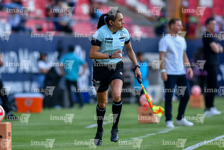 San Luis Potosí, San Luis Potosí, 14 de marzo de 2026. Árbitro asistente Sandra Elizabeth Ramírez Alemán, durante el partido correspondiente a la jornada 11 del torneo Clausura 2026 de la Liga BBVA MX, entre el Atlético San Luis y el Club Pachuca, realizado en el Estadio Libertad Financiera. Foto: Imago7/ Olimpia Puga