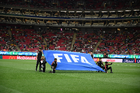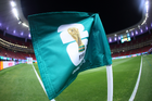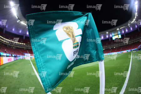 Zapopan, Jalisco, 26 de marzo de 2026. Banderín de la Copa Mundial de la FIFA, durante el partido correspondiente a las Semifinales del Torneo Clasificatorio de la Copa Mundial de la FIFA México, Estados Unidos y Canadá 2026 entre la selección de Nueva Caledonia y la selección de Jamaica, celebrado en el estadio Guadalajara. Foto: Imago7/ Juan Carlos Cubeyro.