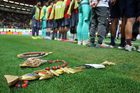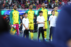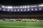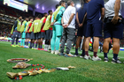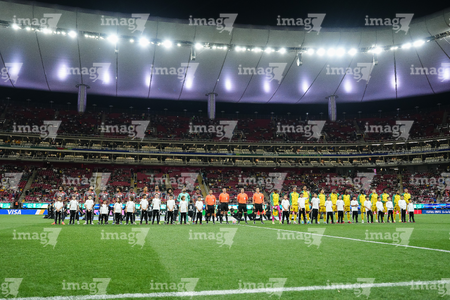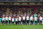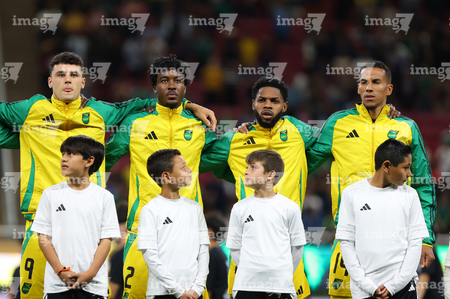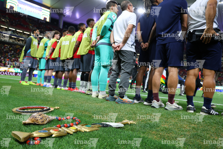 Zapopan, Jalisco, 26 de marzo de 2026. Protocolo, durante el partido correspondiente a las Semifinales del Torneo Clasificatorio de la Copa Mundial de la FIFA México, Estados Unidos y Canadá 2026 entre la selección de Nueva Caledonia y la selección de Jamaica, celebrado en el estadio Guadalajara. Foto: Imago7/ Juan Carlos Cubeyro.