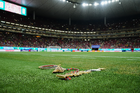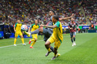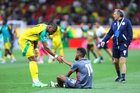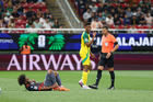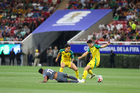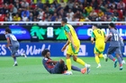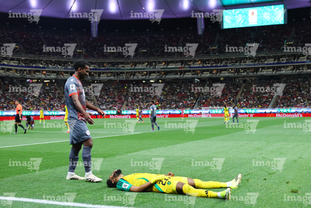 Zapopan, Jalisco, 26 de marzo de 2026. Georges Gope-Fenepej resultó lesionado, durante el partido correspondiente a las Semifinales del Torneo Clasificatorio de la Copa Mundial de la FIFA México, Estados Unidos y Canadá 2026 entre la selección de Nueva Caledonia y la selección de Jamaica, celebrado en el estadio Guadalajara. Foto: Imago7/ Juan Carlos Cubeyro.