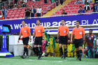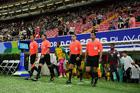 Zapopan, Jalisco, 26 de marzo de 2026. Conato de bronca, durante el partido correspondiente a las Semifinales del Torneo Clasificatorio de la Copa Mundial de la FIFA México, Estados Unidos y Canadá 2026 entre la selección de Nueva Caledonia y la selección de Jamaica, celebrado en el estadio Guadalajara. Foto: Imago7/ Juan Carlos Cubeyro.