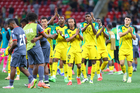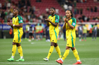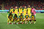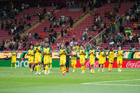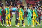 Zapopan, Jalisco, 26 de marzo de 2026. Jugadores de Nueva Caledonia, durante el partido correspondiente a las Semifinales del Torneo Clasificatorio de la Copa Mundial de la FIFA México, Estados Unidos y Canadá 2026 entre la selección de Nueva Caledonia y la selección de Jamaica, celebrado en el estadio Guadalajara. Foto: Imago7/ Juan Carlos Cubeyro.