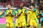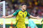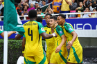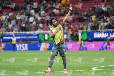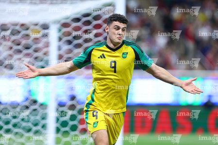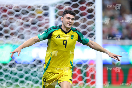 Zapopan, Jalisco, 26 de marzo de 2026. Bailey Cadamarteri en festejo de gol, durante el partido correspondiente a las Semifinales del Torneo Clasificatorio de la Copa Mundial de la FIFA México, Estados Unidos y Canadá 2026 entre la selección de Nueva Caledonia y la selección de Jamaica, celebrado en el estadio Guadalajara. Foto: Imago7/ Juan Carlos Cubeyro.