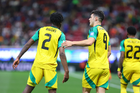 Zapopan, Jalisco, 26 de marzo de 2026. Bailey Cadamarteri y Jamal Lowe, durante el partido correspondiente a las Semifinales del Torneo Clasificatorio de la Copa Mundial de la FIFA México, Estados Unidos y Canadá 2026 entre la selección de Nueva Caledonia y la selección de Jamaica, celebrado en el estadio Guadalajara. Foto: Imago7/ Juan Carlos Cubeyro.