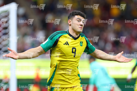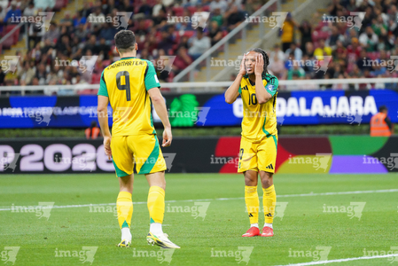 Zapopan, Jalisco, 26 de marzo de 2026. Bobby De Cordova-Reid en reclamo, durante el partido correspondiente a las Semifinales del Torneo Clasificatorio de la Copa Mundial de la FIFA México, Estados Unidos y Canadá 2026 entre la selección de Nueva Caledonia y la selección de Jamaica, celebrado en el estadio Guadalajara. Foto: Imago7/ Juan Carlos Cubeyro.