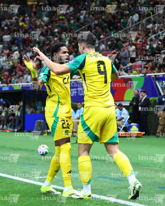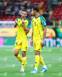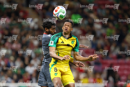 Zapopan, Jalisco, 26 de marzo de 2026. Isaac Hayden y Ethan Pinnock, durante el partido correspondiente a las Semifinales del Torneo Clasificatorio de la Copa Mundial de la FIFA México, Estados Unidos y Canadá 2026 entre la selección de Nueva Caledonia y la selección de Jamaica, celebrado en el estadio Guadalajara. Foto: Imago7/ Juan Carlos Cubeyro.