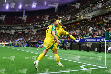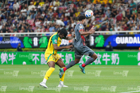 Zapopan, Jalisco, 26 de marzo de 2026. Bailey Cadamarteri y Joseph Athale, durante el partido correspondiente a las Semifinales del Torneo Clasificatorio de la Copa Mundial de la FIFA México, Estados Unidos y Canadá 2026 entre la selección de Nueva Caledonia y la selección de Jamaica, celebrado en el estadio Guadalajara. Foto: Imago7/ Juan Carlos Cubeyro.