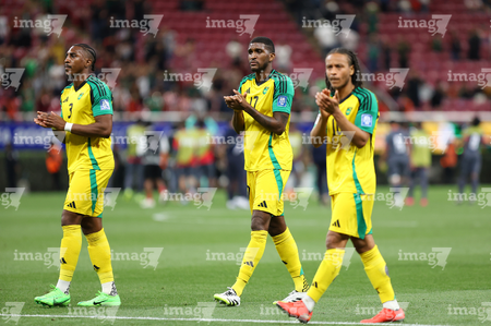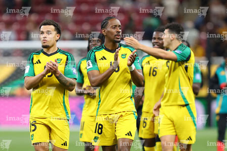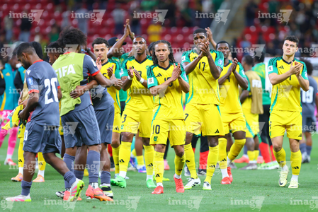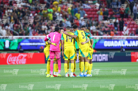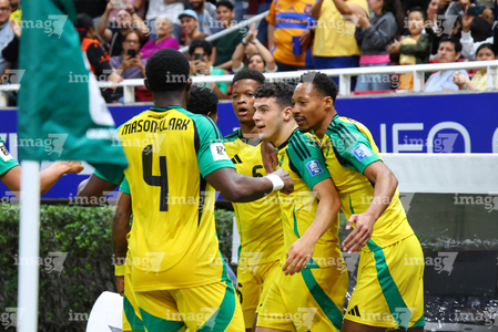 Zapopan, Jalisco, 26 de marzo de 2026. Jugadores de Jamaica, durante el partido correspondiente a las Semifinales del Torneo Clasificatorio de la Copa Mundial de la FIFA México, Estados Unidos y Canadá 2026 entre la selección de Nueva Caledonia y la selección de Jamaica, celebrado en el estadio Guadalajara. Foto: Imago7/ Juan Carlos Cubeyro.