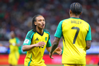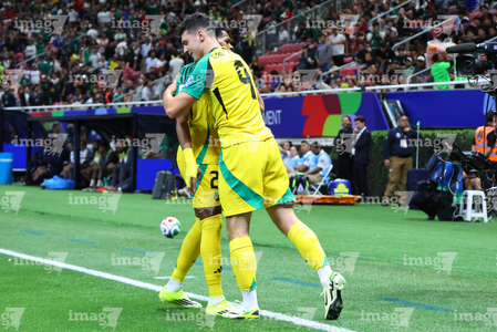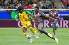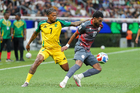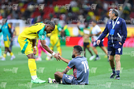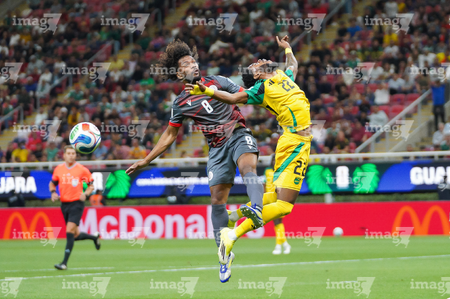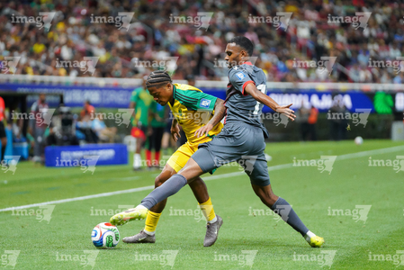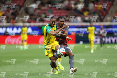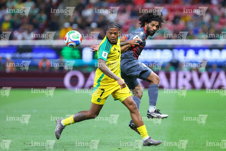 Zapopan, Jalisco, 26 de marzo de 2026. Amarii Bell y Lues Waya, durante el partido correspondiente a las Semifinales del Torneo Clasificatorio de la Copa Mundial de la FIFA México, Estados Unidos y Canadá 2026 entre la selección de Nueva Caledonia y la selección de Jamaica, celebrado en el estadio Guadalajara. Foto: Imago7/ Juan Carlos Cubeyro.