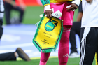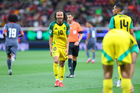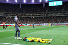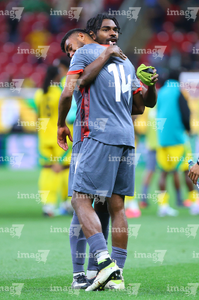 Zapopan, Jalisco, 26 de marzo de 2026. Lues Waya en lamento, durante el partido correspondiente a las Semifinales del Torneo Clasificatorio de la Copa Mundial de la FIFA México, Estados Unidos y Canadá 2026 entre la selección de Nueva Caledonia y la selección de Jamaica, celebrado en el estadio Guadalajara. Foto: Imago7/ Juan Carlos Cubeyro.
