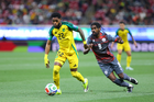Zapopan, Jalisco, 26 de marzo de 2026. Angelo Fulgini, durante el partido correspondiente a las Semifinales del Torneo Clasificatorio de la Copa Mundial de la FIFA México, Estados Unidos y Canadá 2026 entre la selección de Nueva Caledonia y la selección de Jamaica, celebrado en el estadio Guadalajara. Foto: Imago7/ Juan Carlos Cubeyro.