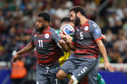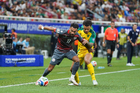 Zapopan, Jalisco, 26 de marzo de 2026. Angelo Fulgini y Tyreece Campbell, durante el partido correspondiente a las Semifinales del Torneo Clasificatorio de la Copa Mundial de la FIFA México, Estados Unidos y Canadá 2026 entre la selección de Nueva Caledonia y la selección de Jamaica, celebrado en el estadio Guadalajara. Foto: Imago7/ Juan Carlos Cubeyro.