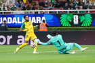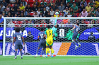 Zapopan, Jalisco, 26 de marzo de 2026. Rocky Nyikeine realiza atajada, durante el partido correspondiente a las Semifinales del Torneo Clasificatorio de la Copa Mundial de la FIFA México, Estados Unidos y Canadá 2026 entre la selección de Nueva Caledonia y la selección de Jamaica, celebrado en el estadio Guadalajara. Foto: Imago7/ Juan Carlos Cubeyro.