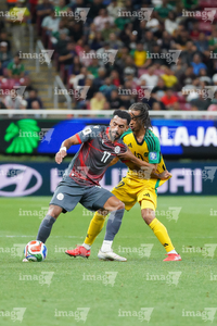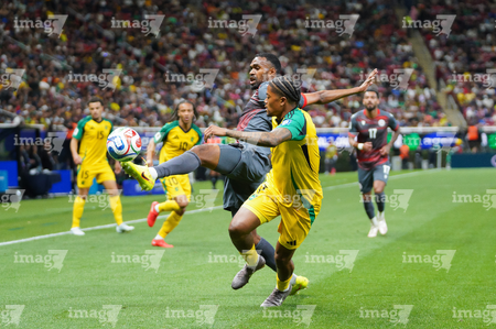 Zapopan, Jalisco, 26 de marzo de 2026. Angelo Fulgini y Bobby De Cordova-Reid, durante el partido correspondiente a las Semifinales del Torneo Clasificatorio de la Copa Mundial de la FIFA México, Estados Unidos y Canadá 2026 entre la selección de Nueva Caledonia y la selección de Jamaica, celebrado en el estadio Guadalajara. Foto: Imago7/ Juan Carlos Cubeyro.