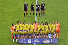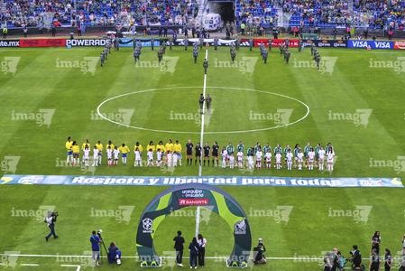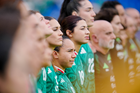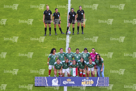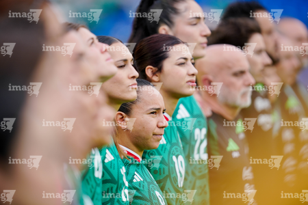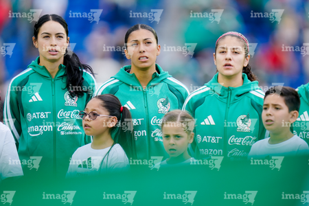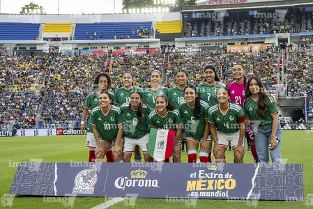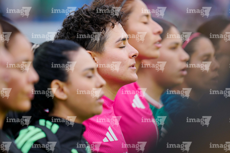Ciudad de México, 7 de marzo de 2026. Jugadoras de la Selección Nacional de México Femenil entonan el himno nacional mexicano, durante el partido internacional de preparación, entre la Selección Nacional de México Femenil y la Selección de Brasil Femenil, realizado en el estadio Ciudad de los Deportes. Foto: Imago7/Diego Padilla