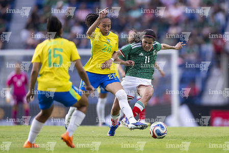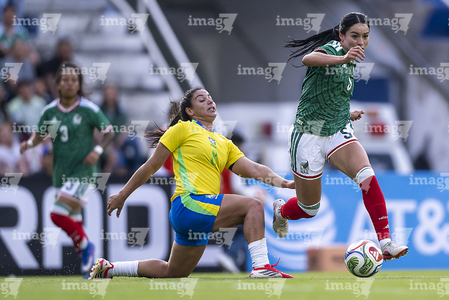 Ciudad de México, 7 de marzo de 2026. y Scarlett Camberos, durante el partido internacional de preparación, entre la Selección Nacional de México Femenil y la Selección de Brasil Femenil, realizado en el estadio Ciudad de los Deportes. Foto: Imago7/ Manlio Contreras