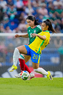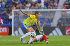 Ciudad de México, 7 de marzo de 2026. Aline Gomes y Jacqueline Ovalle, durante el partido internacional de preparación, entre la Selección Nacional de México Femenil y la Selección de Brasil Femenil, realizado en el estadio Ciudad de los Deportes. Foto: Imago7/ Etzel Espinosa