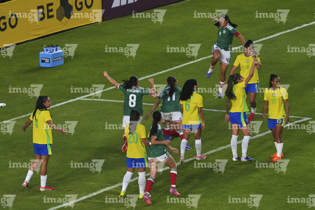 Ciudad de México, 7 de marzo de 2026. 7br y Aaliyah Farmer, durante el partido internacional de preparación, entre la Selección Nacional de México Femenil y la Selección de Brasil Femenil, realizado en el estadio Ciudad de los Deportes. Foto: Imago7/Diego Padilla